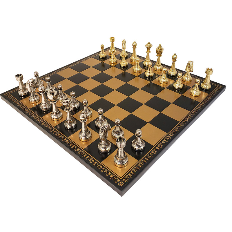 To create this range of high quality chess boards, precious materials are carefully chosen, such as briar, elm and walnut wood; semi-precious stones like onyx, Carrara marble and malachite, while the chess pieces are fashioned in durable metals like brass and bronze, in various finishes ranging from classic satin to gold and to money.