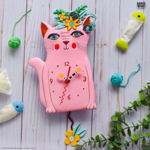 This wall clock in the shape of a pink cat surrounded of flowers is pefect to feat with any decoration, bringing a poetic and original touch!