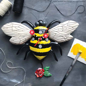 A pretty clock entirely painted by hand, representing a bee. The pendulum is in the shape of a rose and the hands represent flowers. Delightful details for an extraordinary decoration!