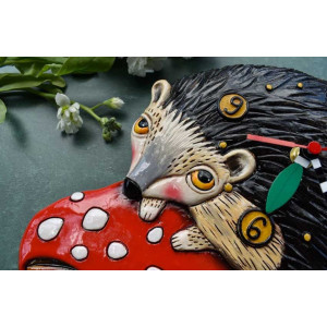 Hedgehog on mushroom wall clock