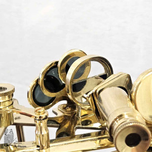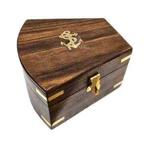 Sextant made of brass, supplied with an acacia wood box decorated with brass inlays including a pretty anchor on the lid.