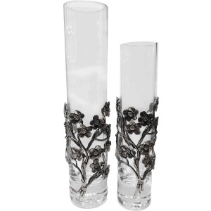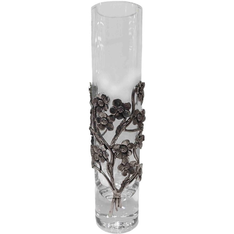 This beautiful glass vase with pewter cherry blossoms decor was made by one of the last pewter workshops of France!