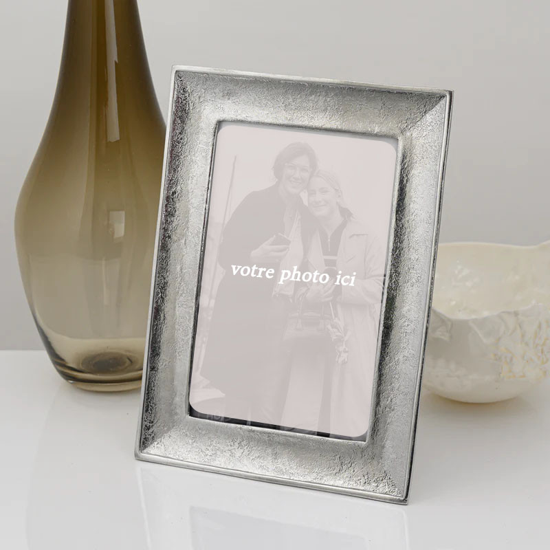 A pretty, hand-made photo frame. The edge is slightly hollow, for an elegant and original look. This creation has a very careful finish. This photo frame can be presented in portrait or landscape format as desired.