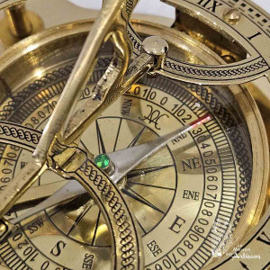 Sundial compass and its wooden box