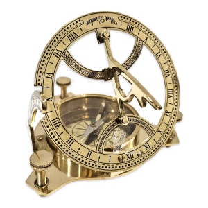 Beautiful antique 2 in 1 object, brass compass-sundial, delivered with its pretty wooden box.