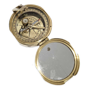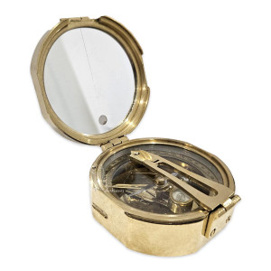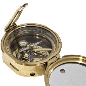 A working reproduction of the compass invented by mining engineer D.W. Brunton in 1894. Brunton designed a portable, compact version of the bulky surveying equipment used at the time. The patent for this pocket compass was filed on September 18, 1894. Brunton then licensed his patent to clockmaker William Ainsworth of Denver, Colorado, and it quickly became a favorite tool of geologists and other professionals around the world.