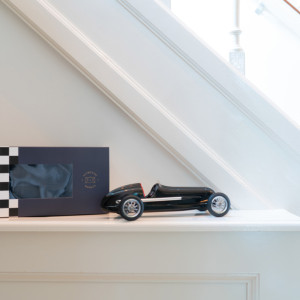 Scale model of the "Silver Arrow" ("Silberpfeil" in German), famous racing car that dominated the Grand Prix in the late 30s.