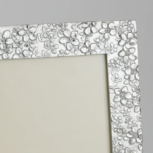 A pretty, hand-made photo frame. It is decorated with several flowers, delicately placed in relief. This creation has a very careful finish. This photo frame can be presented in portrait or landscape format as desired.