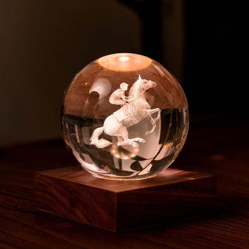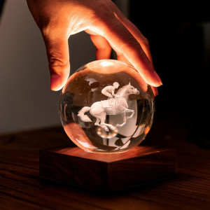 The thrill and elegance of equestrian sports are captured in this beautiful crystal case through an engraved motif depicting a racing joker on his horse. The passion of horse racing is showcased in this portable mood lamp. This motif beautifully captures the power and grace of a galloping horse.