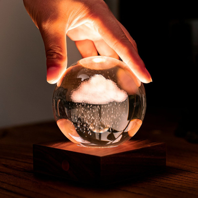 This beautiful crystal ball treasures an engraved rain cloud motif. The serene beauty of a rainy sky symbolizes renewal.