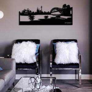 This wall decoration in cut metal, which reproduces the lines of the city of Sydney, reveals beautiful shadow plays. It offers a beautiful imaginary view where emblematic monuments of the city are harmoniously grouped.