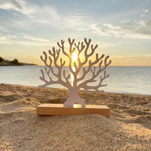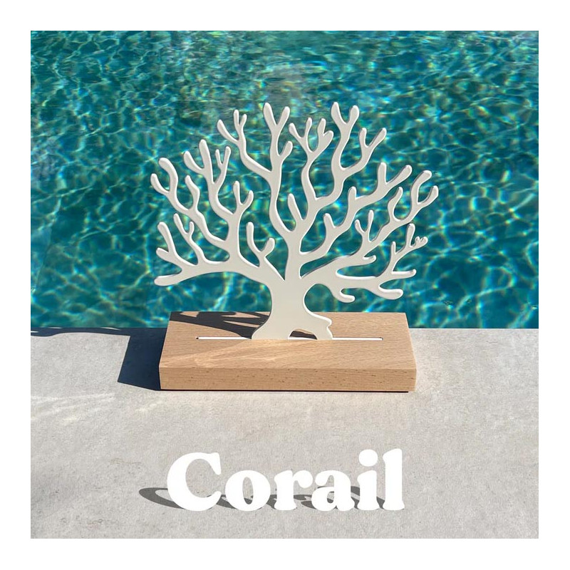 Metal Coral silhouette on beech base