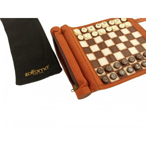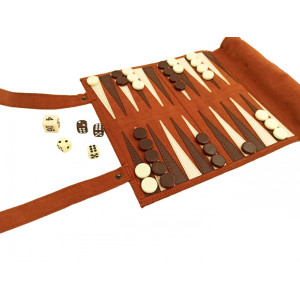 3-in-1 roll-up board game set, including a checkers set, a chess set, and a backgammon set with dice. Very practical to take anywhere, lightweight, and space-saving! Comes with a case.