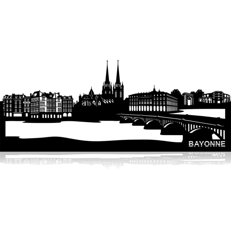 This wall decoration in cut metal, which reproduces the lines of the city of Bayonne (France), reveals beautiful shadow plays. It offers a beautiful imaginary view where emblematic monuments of the city are harmoniously grouped.
