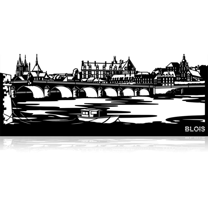 This wall decoration in cut metal, which reproduces the lines of the city of Blois (France), reveals beautiful shadow plays. It offers a beautiful imaginary view where emblematic monuments of the city are harmoniously grouped.