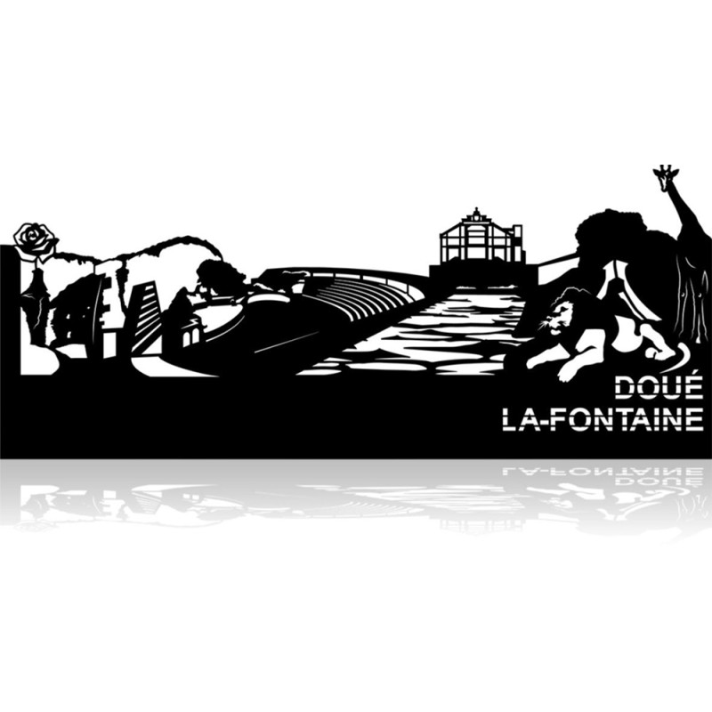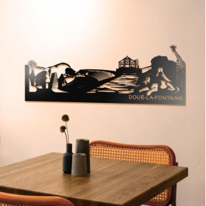 This cut-out metal wall decoration representing the lines of the town of Doué-la-Fontaine reveals pretty play of shadows. It offers a beautiful view of the Place des Fontaines as well as the Bioparc zoo of Doué-la-Fontaine.