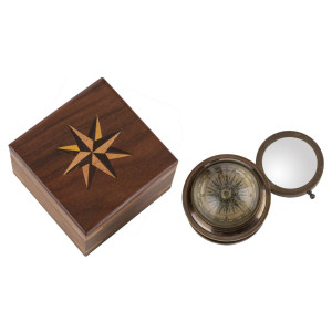Compass with magnifying glass and its wooden box