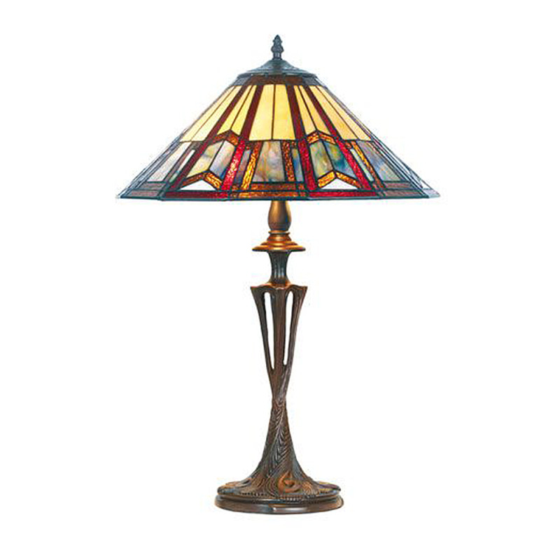 A superb decorative lamp in the Tiffany stained glass style, composed of around sixty hand-assembled glass pieces.