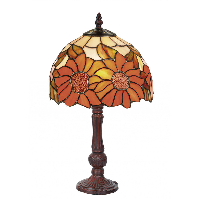 Its lampshade is made of glass pieces forming sunflower patterns, for a sunny touch.