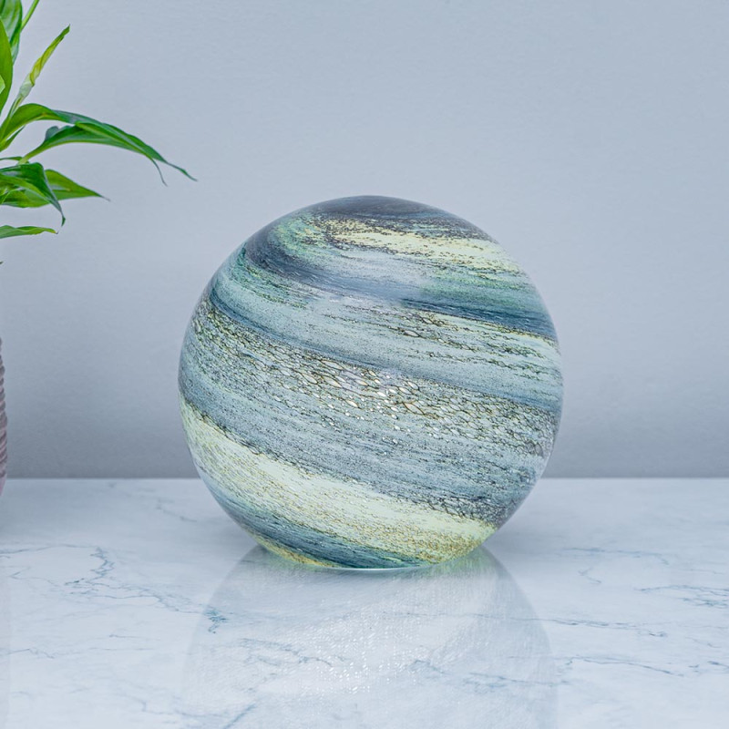 All Planet Lamps are handcrafted to bring a touch of magic to your home. Lara Glow, a talented glassblower, draws her inspiration from the breathtaking beauty of the Northern Lights and the mysteries of astronomy. Each lamp is meticulously crafted, reflecting her passion for nature and her desire to share her artistic vision with the world.