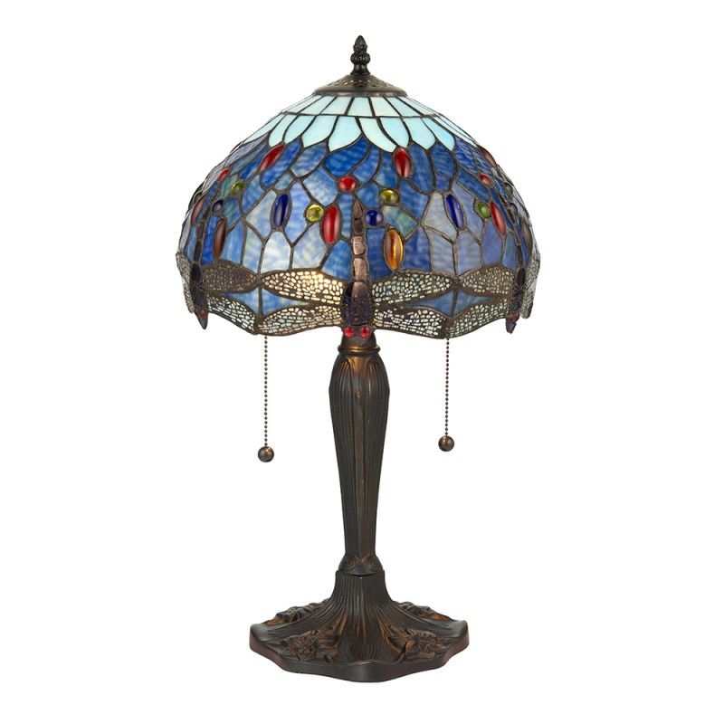 This Dragonfly Blue lamp is part of traditional Tiffany Art Nouveau style. This design in a vivid blues with multi coloured glass beading creates a beautiful atmosphere, suitable for any interior.
