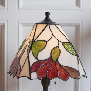 This simple and elegant Tiffany lamp is decorated with Art Nouveau elements (floral and romantic themes). It is part of traditional Tiffany design with a modern twist.