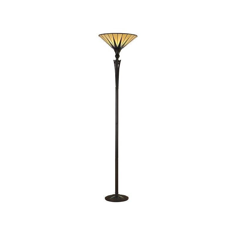 This Tiffany floor lamp is designed with iridescent black glass contrasting with pearly cream background. This geometrical design is typical of Art Deco style.