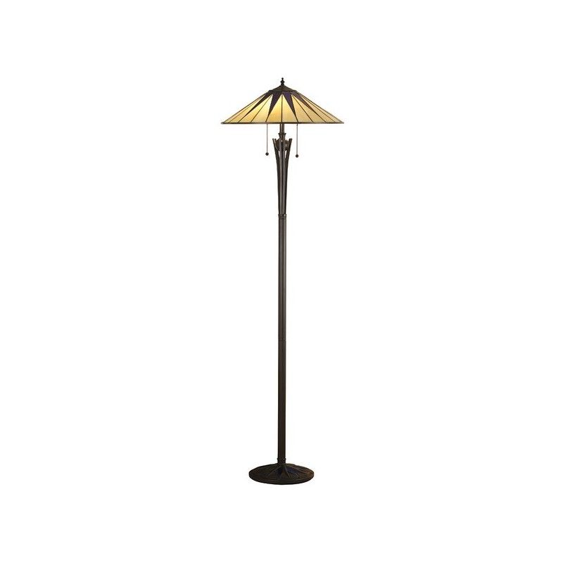 This Tiffany floor lamp is designed with iridescent black glass contrasting with pearly cream background. This geometrical design is typical of Art Deco style.
