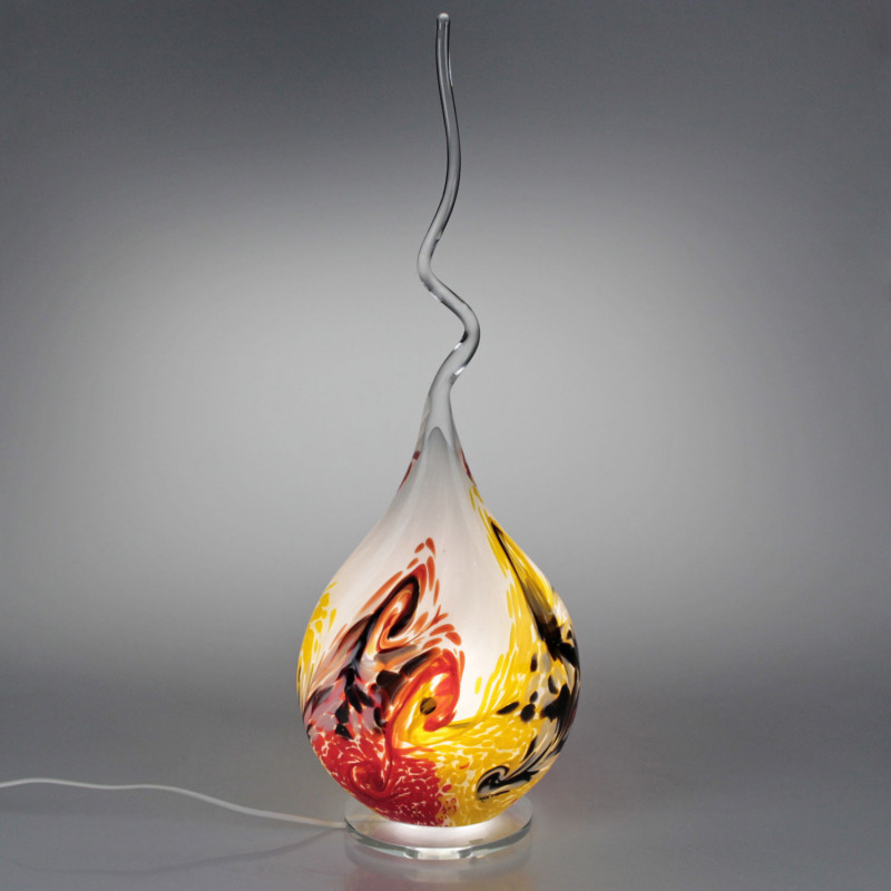 This lamp is a splendid unique creation made by masters of glass art. It has a captivating decor with a spiral motif.