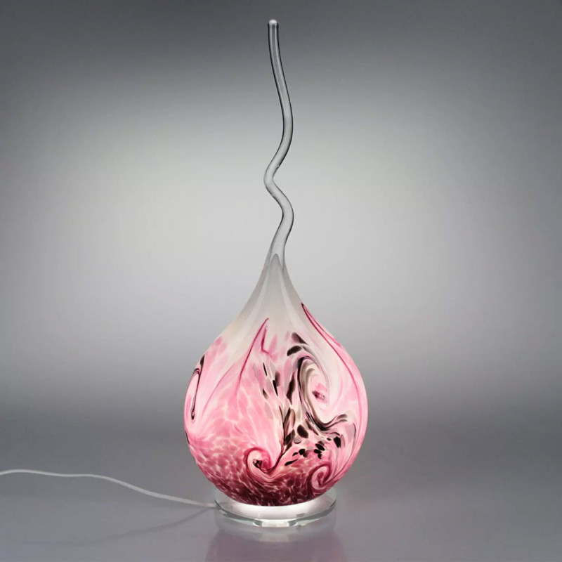 This lamp is a splendid unique creation made by masters of glass art. It has a captivating decor with a spiral motif.