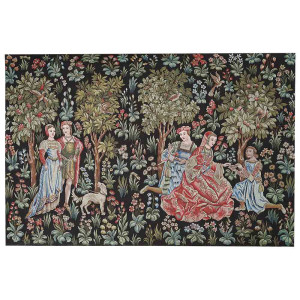 With its "millefleur" background, this tapestry depicts elegant characters who play games, read and play music. This scene, full of grace and poetry, represents the “Art de Vivre” of the end of the 15th century.