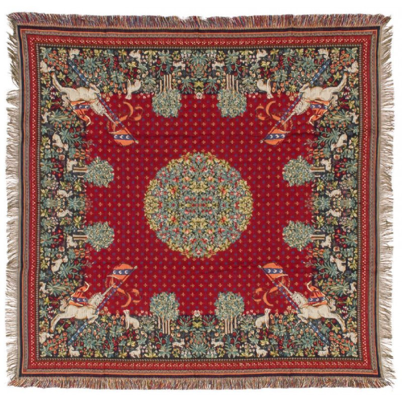 Blanket inspired from the six well-known "Dame à la Licorne" (The lady and the Unicorn) series of which five are devoted to the five senses.