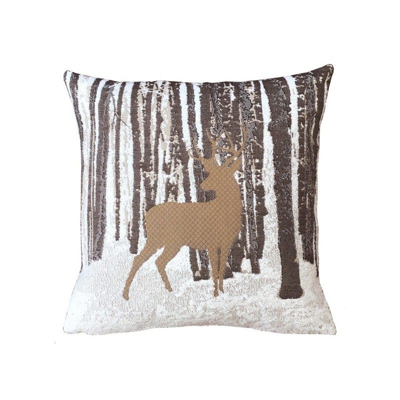 Stylized deer cushion. The treatment of the design and its colors combine tradition and modernity. Ideal to bring a nature and cocooning spirit to your interior. Soft materials and weaving effects give it relief.