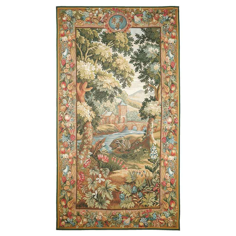 This tapestry is based on woven work from the beginning of the 18th century by the Royal Manufacture of Beauvais. These tapestries with medallions were generally used to decorate royal or bourgeois mansions. They are a particular feature of the Beauvais production.