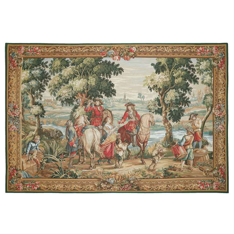The Brussels workshops drew inspiration from a prestigious series "Histoire du Roi", created by Charles Le Brun and by the Flemish painter Der Meulun between 1665 and 1680, which celebrates the conquests and victories of the 'Sun King' Louis 14th. This series does not evoke particular battles but rather the current activities of marching armies ot this time.