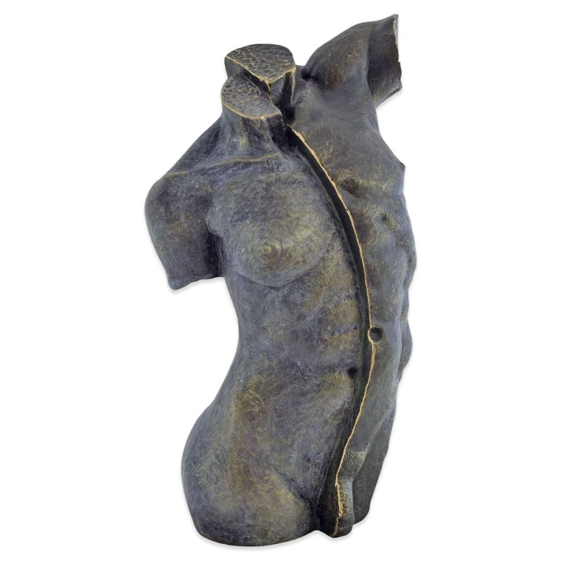 "Nexus," a connection between two elements that meet, is a 32 cm high sculpture from the Maria Anglada collection. This sculpture depicts an ivory-colored female bust joined to a bronze-colored male bust. It is a beautiful work symbolizing the powerful bond between two people and celebrating the beauty of the human body.