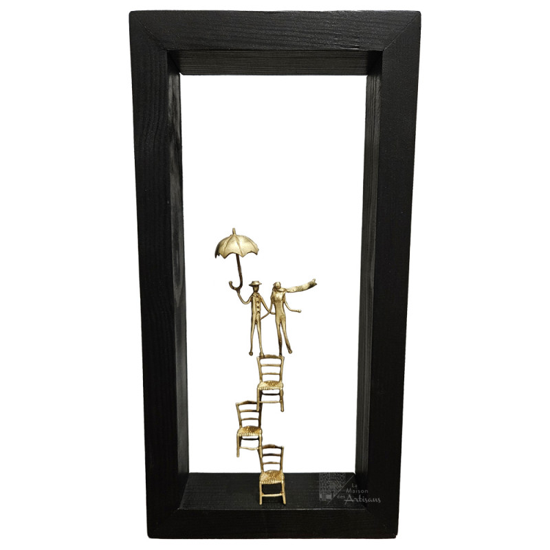 The poetic and romantic universe of the talented sculptor Georges Roumanas attracts the look and often touches right in the heart. Every original work of this collection is made in bronze and is stamped to protect its authenticity. It has a catcher placed behind the frame so it can be hanged on the wall, but can also simply be placed on a piece of furniture, a shelf, etc.... George Roumanas hails from Petrítsi, a village in Southern Greece renowned for its idyllic environs. Like the artists who flock there from around the world, George is influenced by his lush surroundings, as well as the imaginative work and creativity of the makers who call Petrítsi home. The self-taught artist brings common experiences, concepts, and emotions - love, dance, music, family - to life by combining wood, stone, and other natural materials with manmade ones, like glass and bronze.