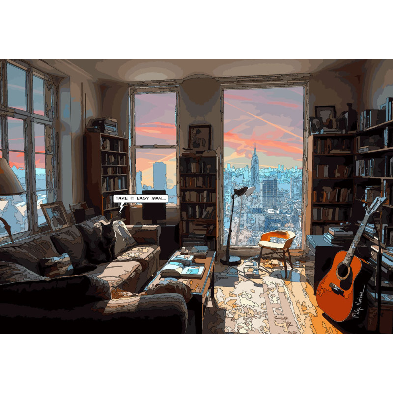 After the studies in communication, he begins his career in the publicity at 22. At the same time, he has passion for comics and travel. Self-educated graphics, after a long growth, he defines a mode of expression which allow him to reconcile these two passions and he creates some image. These images are based on easy concept : in all landscape, urban or not, tere are hidden stories which want only be uncovered. A graphics touch inspired by clear line with a very strong energy which we can see in the set of his works, a bubble bursts against a window or a car is the first step of a history that we can imagine ourselves. Intriguing or funny, disturbing, crazy or romantic this history belongs to everyone. Encouraged from his friends, he makes his first creations in 2005 with several digital techniques.