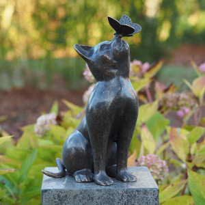 27cm tall sculpture of a cat, crafted from solid bronze by Flemish artist Ben Wouters, suitable for indoor or outdoor use.