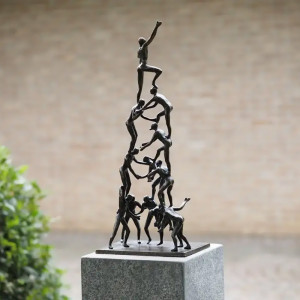 This 53cm tall sculpture, suitable for indoor or outdoor display, depicts 12 figures in balance, forming a human pyramid. Made of solid bronze, it was created by the Flemish artist Ben Wouters.