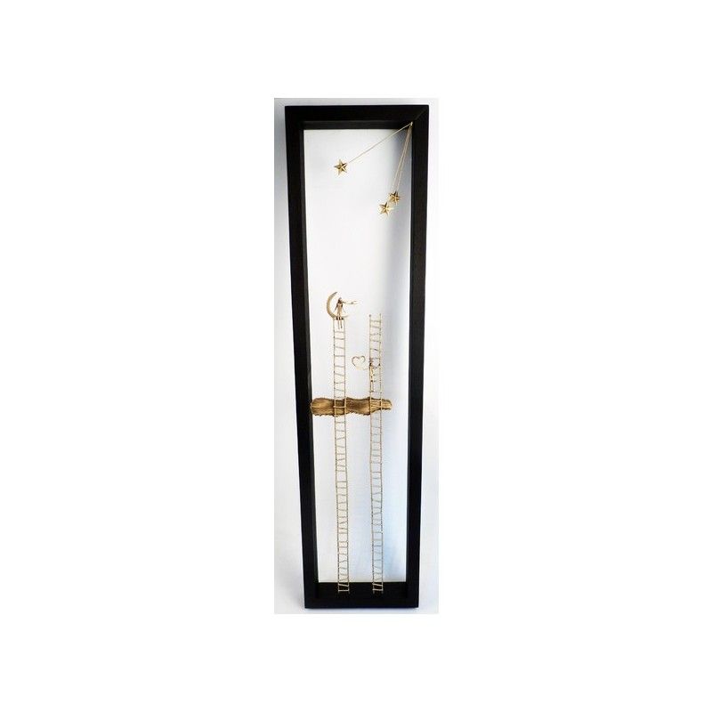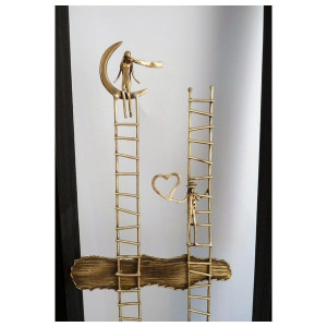 This bronze sculpture framed with wood is a unique and original creation of the Greek artist Georges Roumanas. Women are very linked to the moon. Sometimes, men nead to go higher and higher to reach their heart.