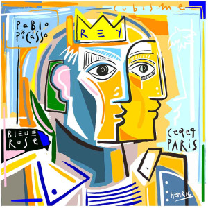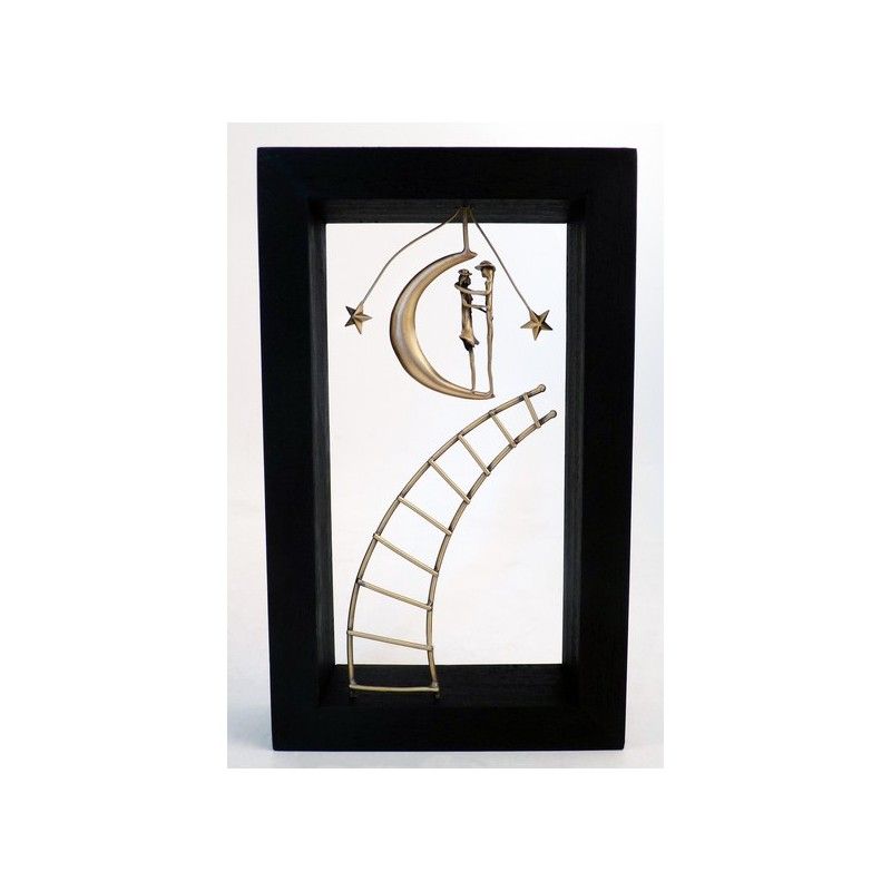 This bronze sculpture framed with wood is a unique and original creation of the Greek artist Georges Roumanas. It represents a couple sitting on Cupidon's arrow.