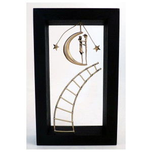It has a catcher placed behind the frame so it can be hanged on the wall, but can also simply be placed on a piece of furniture, a shelf, etc.... Hanged on the wall, you can see beautiful shadows.