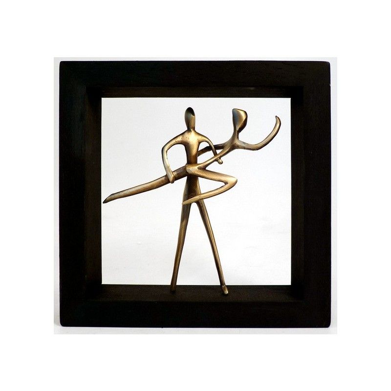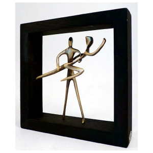 This bronze sculpture framed with wood is a unique and original creation of the Greek artist Georges Roumanas. It represents a couple of dancers.