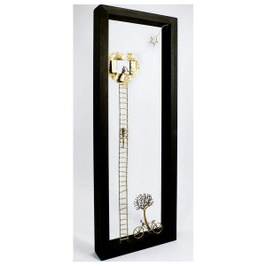 It has a catcher placed behind the frame so it can be hanged on the wall, but can also simply be placed on a piece of furniture, a shelf, etc.... Hanged on the wall, you can see beautiful shadows.