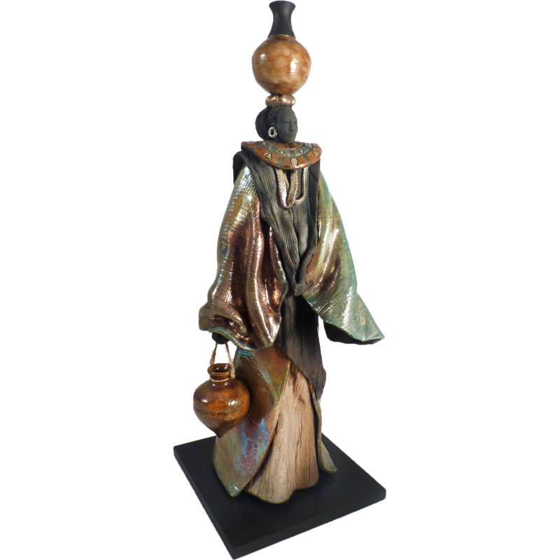 Paul Beckrich's sculptures are inspired by his numerous journeys through Africa and Asia, to which he confers a surprising mixture of movement and lightness. His subjects are dressed in traditional clothes which look incredibly natural and realistic. The delicacy of the chasing in its work returns all the relief of drapes and wrinkled to the materials of his characters.Being the reference regarding the art of raku, the characters of Paul Beckrich are from now on of numerous both public and private collections in the world.