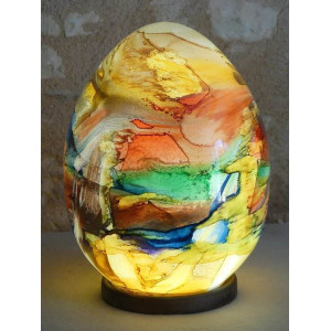It is hand-painted with a colorful variety of ceramic slips and bright enamel glazes, then accented with platinum and 24K gold.