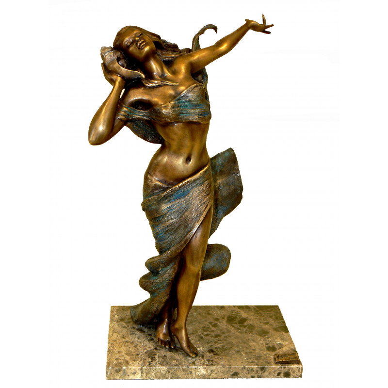 Like a mermaid, with her shell, this woman seems to move and let herself be carried along by a symphony of the oceans.