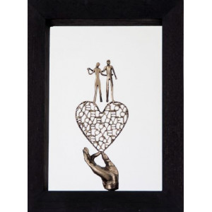 The poetic and romantic universe of this talented sculptor attracts the look and often touches right in the heart. Every original work of this collection is made in bronze and is stamped to protect its authenticity. It has a catcher placed behind the frame so it can be hanged on the wall, but can also simply be placed on a piece of furniture, a shelf, etc.... George Roumanas hails from Petrítsi, a village in Southern Greece renowned for its idyllic environs. Like the artists who flock there from around the world, George is influenced by his lush surroundings, as well as the imaginative work and creativity of the makers who call Petrítsi home. The self-taught artist brings common experiences, concepts, and emotions - love, dance, music, family - to life by combining wood, stone, and other natural materials with manmade ones, like glass and bronze.