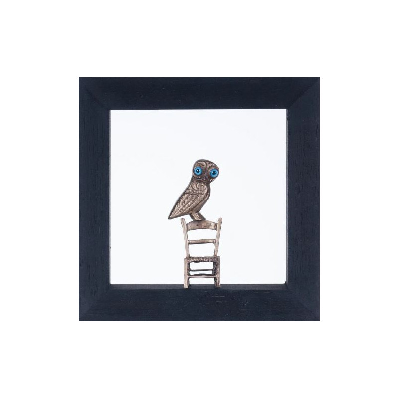"Owl on chair" framed bronze | Roumanas